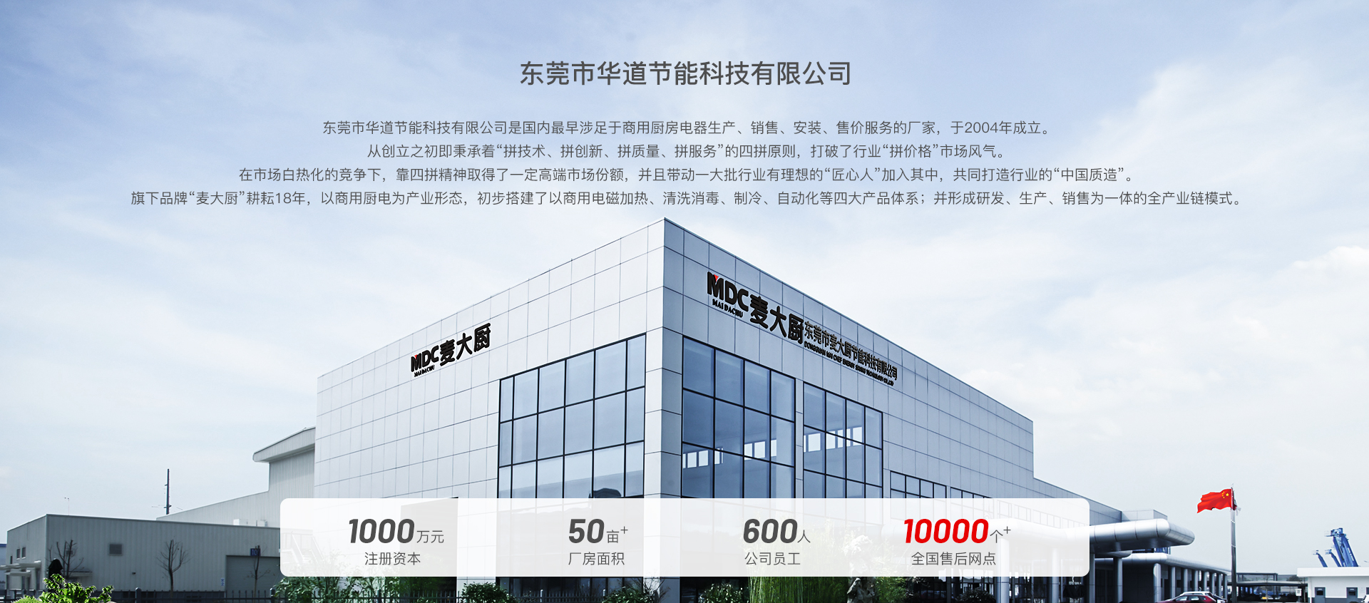 東莞市華道節能科技有限公司是國內最早涉足于商用廚房電器生產、銷售、安裝、售價服務的廠家,于2004年成立。 從創立之初即秉承著“拼技術、拼創新、拼質量、拼服務”的四拼原則,打破了行業“拼價格”市場風氣,在市場白熱化的競爭下,靠四拼精神取得了一定高端市場份額 并且帶動一大批行業有理想的“匠心人”加入其中,共同打造行業的“中國質造”。